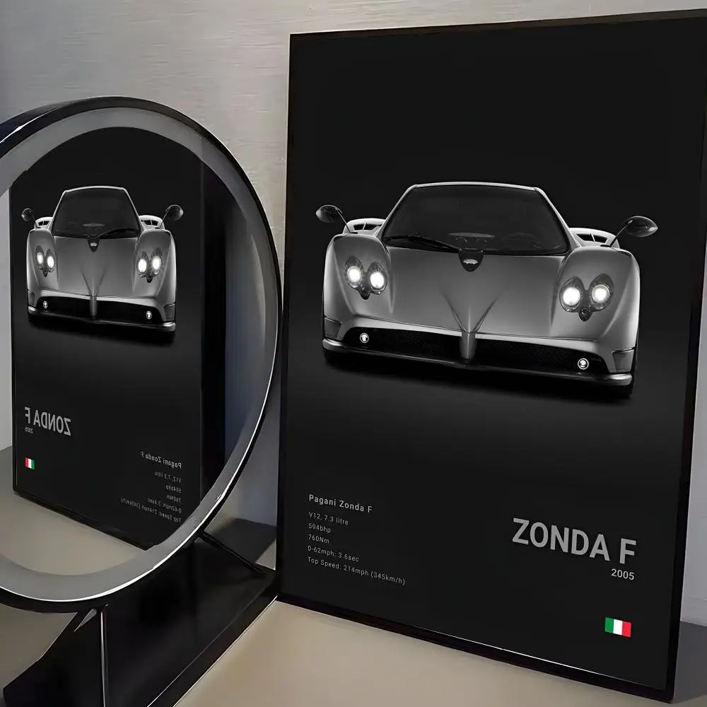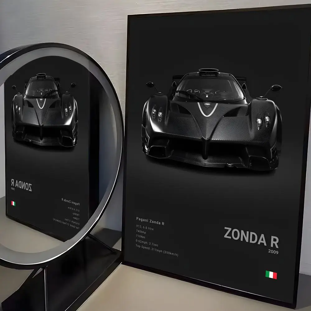 Luxury Supercar Poster P-Pagani Black – Waterproof Stickers for Wall Decoration in Living Room, Bar or Bedroom