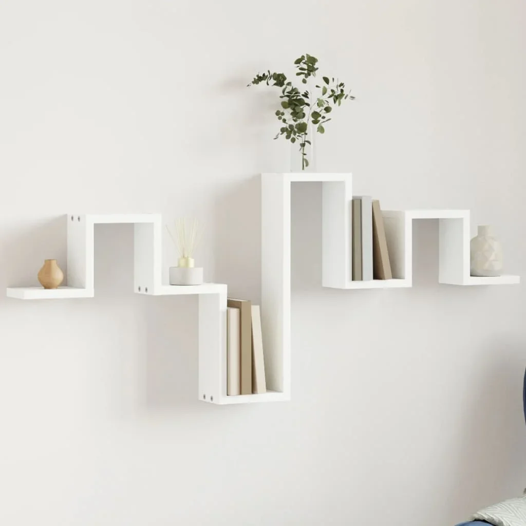 White wall shelf 104.5 x 10 x 43 cm in manufactured wood – Decorative vertical hanging shelf for living room and home